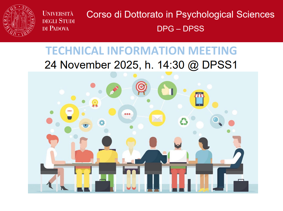 Please note: at the moment, all paperwork and forms related to your PhD should be either submitted in person at our administration office or sent by email to phd.psychology@unipd.it.